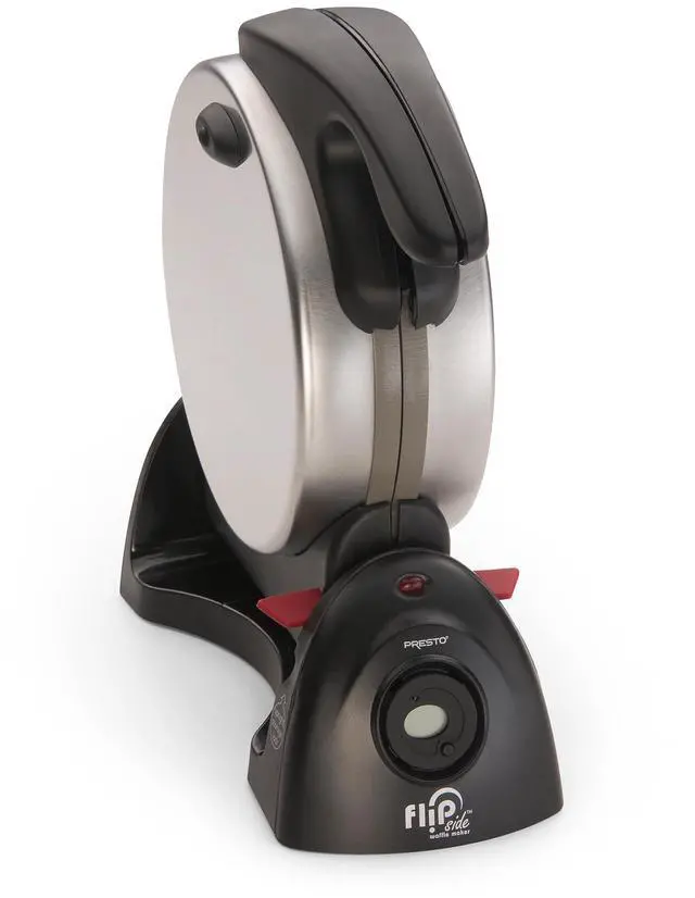 Flips 180° to evenly spread batter for waffles that are crispy outside and fluffy, tender inside.