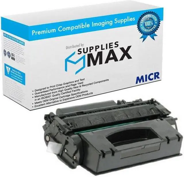 SuppliesMAX MICR Toner Cartridge compatible replacement for HP Q5949X-MICR. Yields up to 6000 pages at 5% coverage. For consistent, high-volume printing. Magnetic toner is designed for secure check and barcode printing. Manufactured to OEM specifications for bank-compliant performance and sharp, high-quality output. Engineered for reliable results and seamless installation in supported 110V U.S.-based printers.