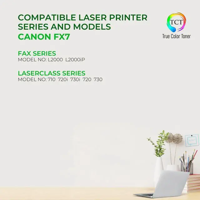 TCT offers quality Canon FX7 7621A001AA compatible replacement cartridges that fit effortlessly into your printer. You will find crisp, clear prints with consistently dark tones and sharp images in every single print job. Get professional quality prints every time and save a bundle with True Color Toners high quality printing supplies!