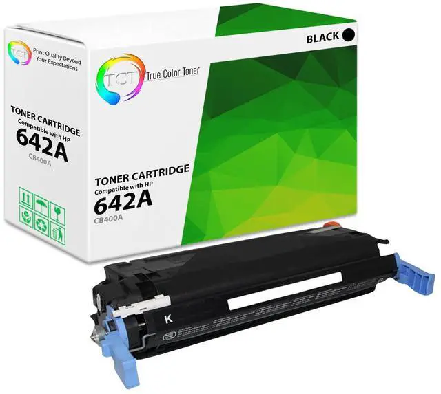 TCT offers quality HP 642A CB400A compatible replacement cartridges that fit effortlessly into your printer. You will find crisp, clear prints with consistently dark tones and sharp images in every single print job. Get professional quality prints every time and save a bundle with True Color Toners high quality printing supplies!