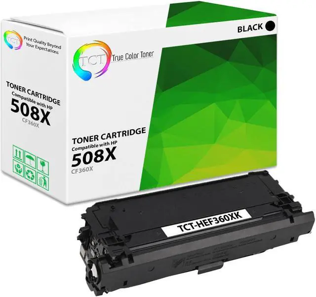TCT offers quality HP 508X CF360X High Yield compatible replacement cartridges that fit effortlessly into your printer. You will find crisp, clear prints with consistently dark tones and sharp images in every single print job. Get professional quality prints every time and save a bundle with True Color Toners high quality printing supplies!