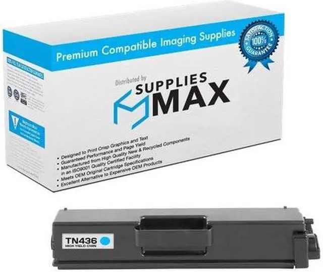 SuppliesMAX Super High Yield Toner Cartridge compatible replacement for Brother TN-436C. Yields up to 6500 pages at 5% coverage for consistent, high-volume printing. Built with quality components to deliver crisp black output, clear color contrast, and reliable performance for everyday business and personal use. Designed for long-lasting results and easy installation in supported 110V printers sold in the U.S.