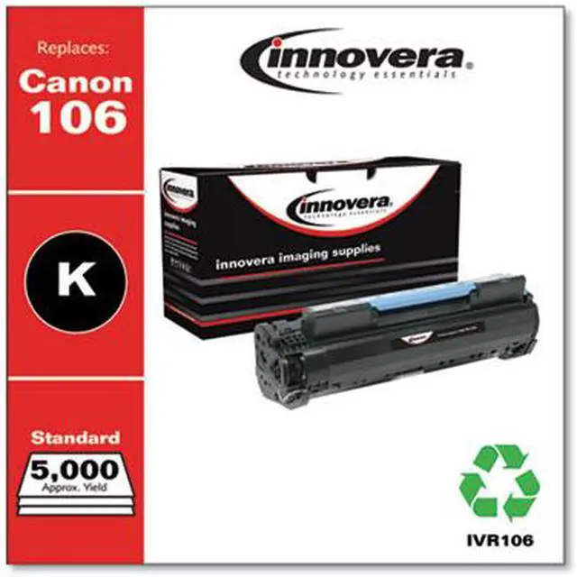 Remanufactured Black Toner, Replacement for Canon 106 (0264b001), 5, 000 Page-YieldSuperior quality toner provides crisp, deep blacks at significant cost savings. Consistent performance—each cartridge is designed and tested to work every time. Meets or exceeds the page yield and print performance of the national brands.