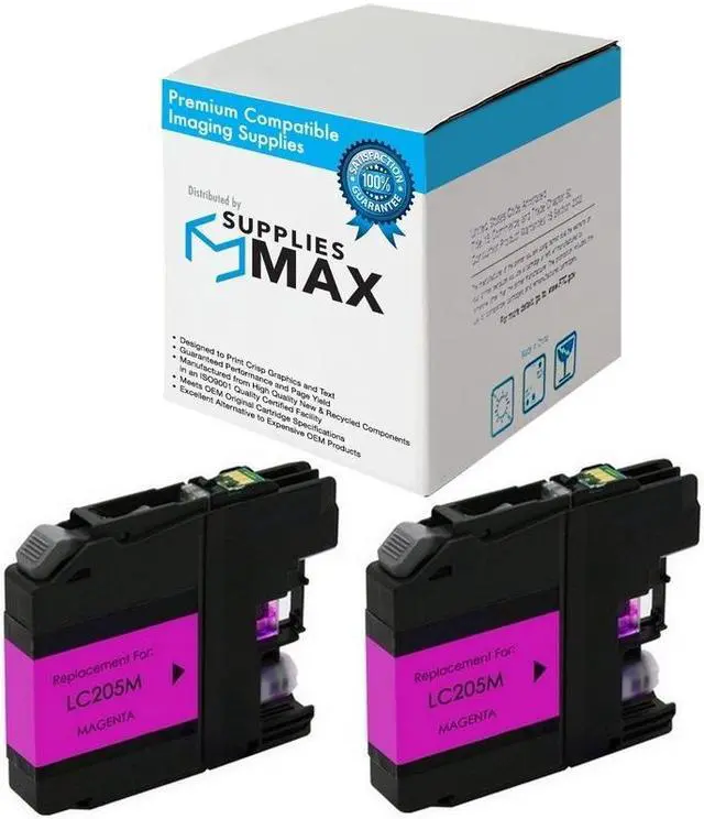 SuppliesMAX Super High Yield Inkjet compatible replacement for Brother LC-205M2PKS. Yields up to 1200 pages at 5% coverage. Premium ink delivers vibrant color and sharp text for photos, presentations, and everyday documents. Engineered for reliable performance, long-lasting results, and seamless installation in supported 110V U.S.-based printers.