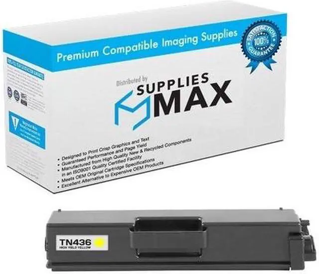SuppliesMAX Super High Yield Toner Cartridge compatible replacement for Brother TN-436Y. Yields up to 6500 pages at 5% coverage for consistent, high-volume printing. Built with quality components to deliver crisp black output, clear color contrast, and reliable performance for everyday business and personal use. Designed for long-lasting results and easy installation in supported 110V printers sold in the U.S.
