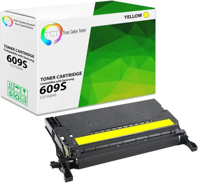TCT offers quality Samsung CLT-609S CLT-Y609S compatible replacement cartridges that fit effortlessly into your printer. You will find crisp, clear prints with consistently dark tones and sharp images in every single print job. Get professional quality prints every time and save a bundle with True Color Toners high quality printing supplies!