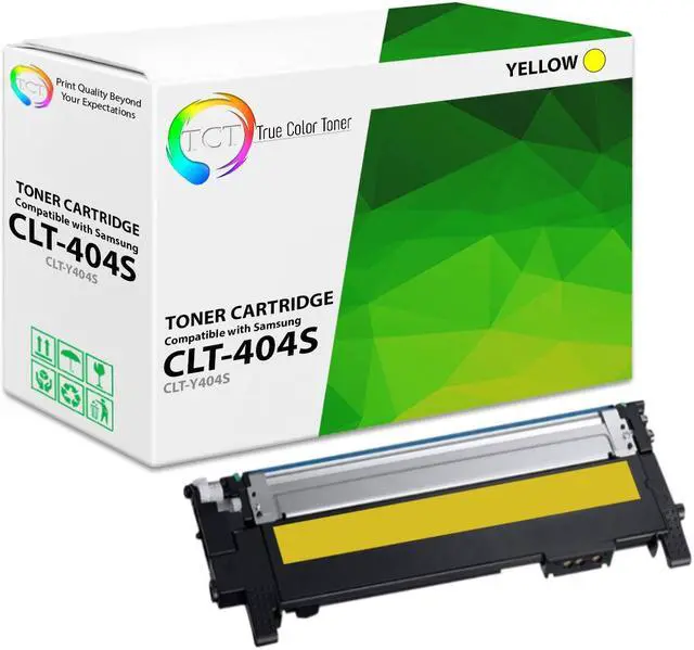 TCT offers quality Samsung CLT-404S CLT-Y404S compatible replacement cartridges that fit effortlessly into your printer. You will find crisp, clear prints with consistently dark tones and sharp images in every single print job. Get professional quality prints every time and save a bundle with True Color Toners high quality printing supplies!