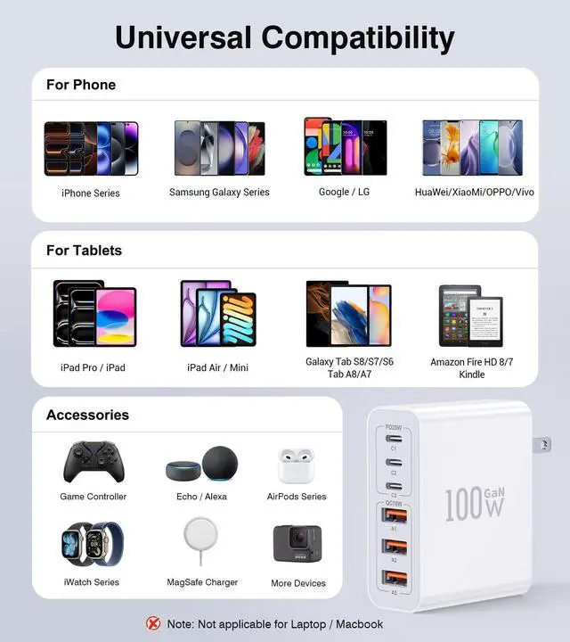 | Other Accessories | Wireless Chargers, Wireless Earbuds, Smartwatch, Switch and more USB C devices. |