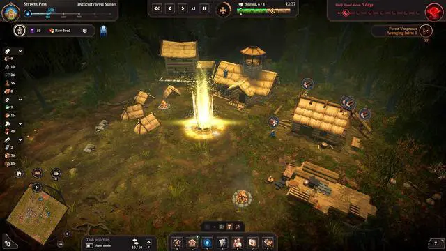 The nights grow increasingly longer and colder, but snowstorms and penetrating frost are not your only enemies... Portals open everywhere, allowing Prince Velimir's servants to hunt down the survivors. The longer you stay in one place, the stronger the Darkness grows and more ruthless the nights become: with every house built, with every lair destroyed the pressure of the woods only gets worse. Ghouls, Leshies, Werewolves, and Night Hags are only some of the creatures that will try to destroy your settlement. You'll have to defend your land against monsters and defeat their Baron so that you are able to move to new lands.