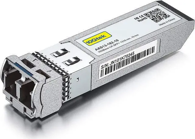 10Gtek's AXS13-192-10 is a 10Gbps SFP+ transceiver supporting up to 10 km transmission over dual LC SMF fiber, following IEEE 802.3ae and SFP+ MSA 10GBase-LR. The SFP+ transceiver consists of 1310nm FP laser TOSA, PIN-(tia) ROSA, Driver IC and eeprom I2C unit.