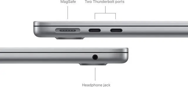 The 13.6-inch Liquid Retina display features sharp resolution, vibrant P3 color, and True Tone technology for stunning visuals. Finished in Space Gray, this MacBook Air combines portability with premium design.