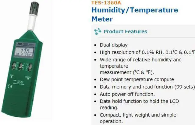 TES-1360A Humidity/Temperature Meter DATA Memory and Read Function(99Set)