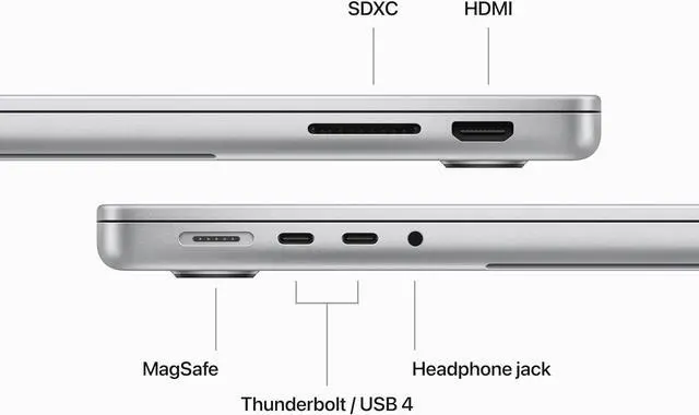 The 14.2-inch Liquid Retina XDR display with 3024 × 1964 resolution provides stunning brightness, deep contrast, and incredible color accuracy. With mini-LED technology and ProMotion adaptive refresh rates up to 120Hz, the display delivers an immersive viewing experience ideal for video editing, design work, and media consumption.