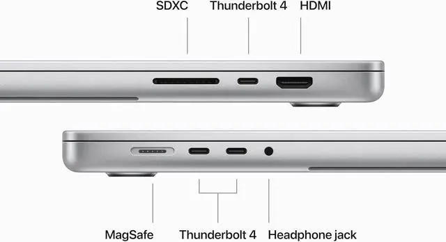 The 14.2-inch Liquid Retina XDR display provides stunning clarity with a 3024 x 1964 resolution, ProMotion technology up to 120Hz, and extreme dynamic range for professional-level color accuracy.