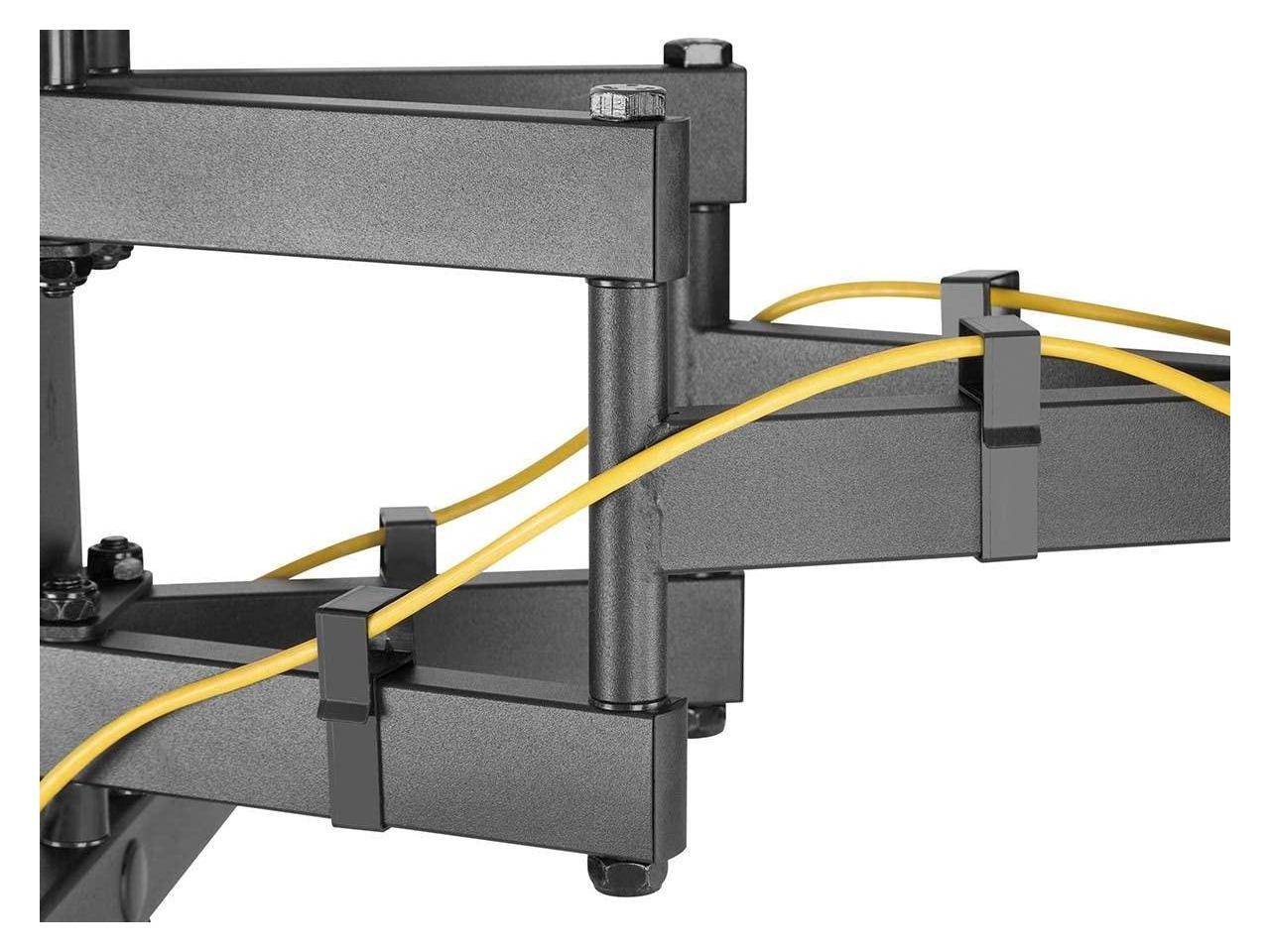 - Full Motion Articulating Wall Mount: Monoprice full motion wall mounts offer the ultimate in comfort and flexibility. The articulated swing arm allows you to move the TV towards or away from the wall, tilt it up or down, and angle it from side to side. The articulating plate holding the TV also allows you to rotate the TV to ensure it is level.|Supports VESA patterns between 300x200 and 800x400. Supports TVs weighing up to 132 pounds.|Designed For Flat And Curved Displays: This mount is designed for 43" ~ 90" flat and curved displays.|Allows you to adjust your TV for the most comfortable viewing angle, no matter where you choose to sit.