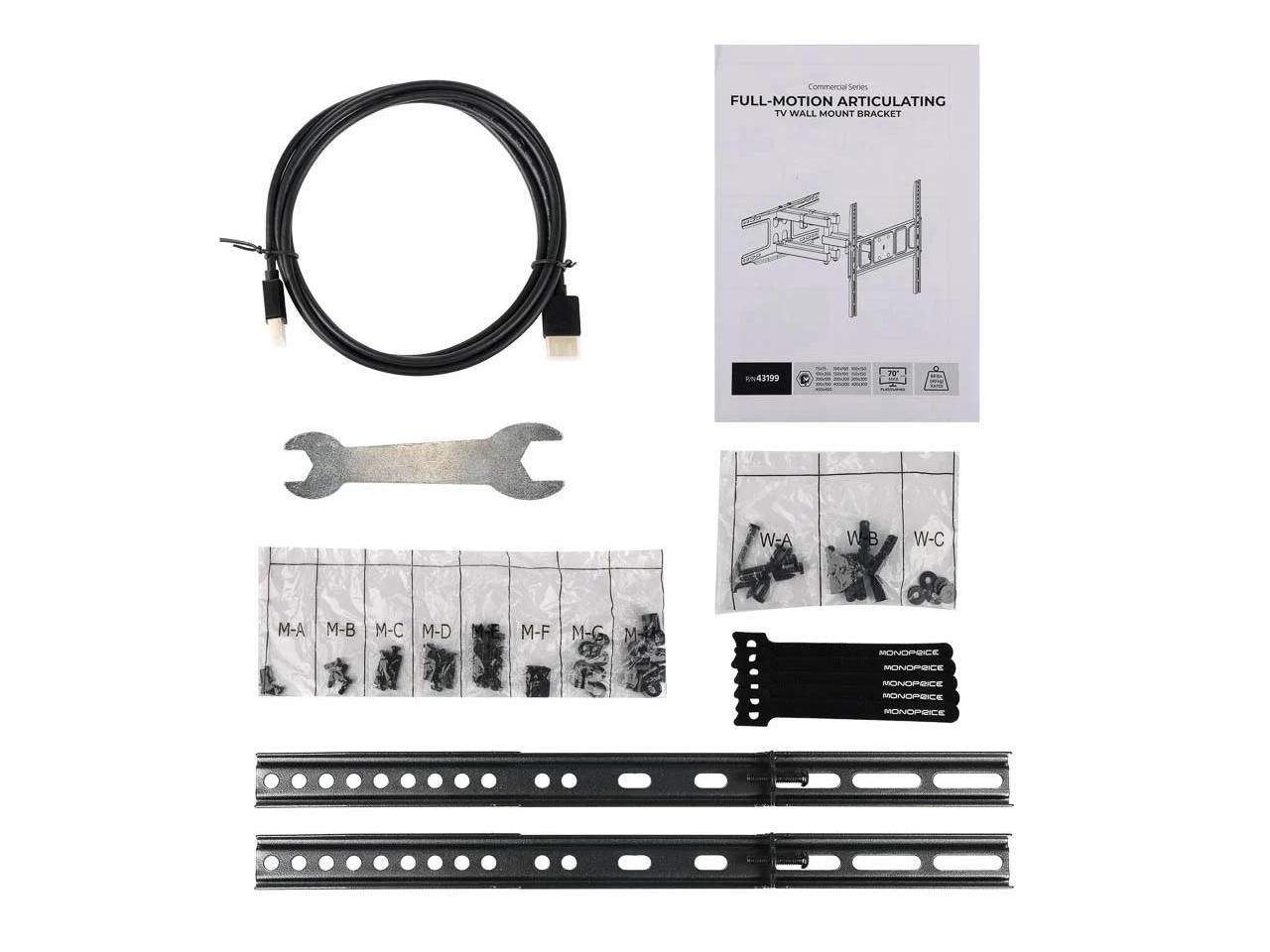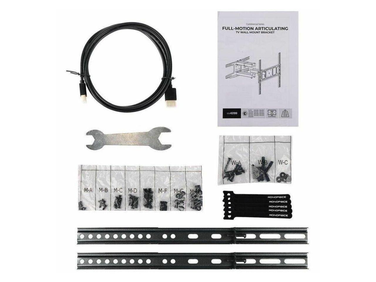 Monoprice 43199 Commercial Full Motion TV Wall Mount Bracket For 32" To 70" TVs up to 88lbs, Max VESA 400x400, Fits Curved Screens