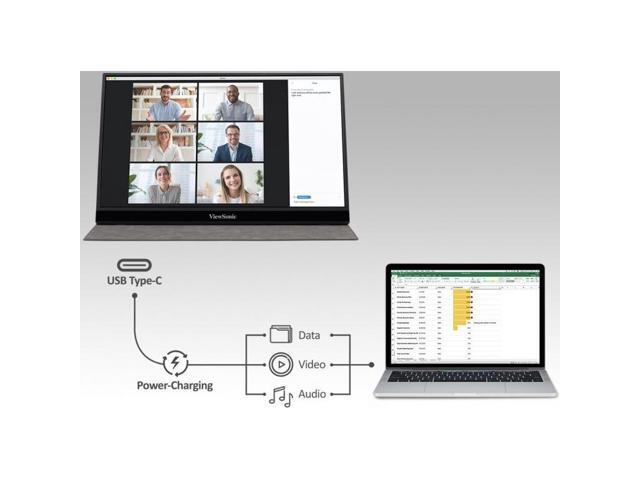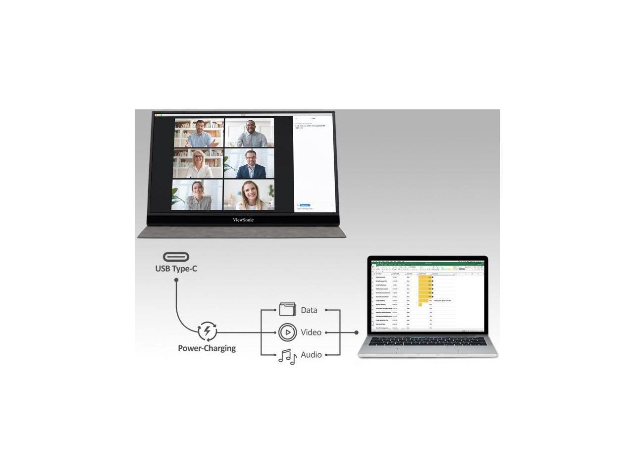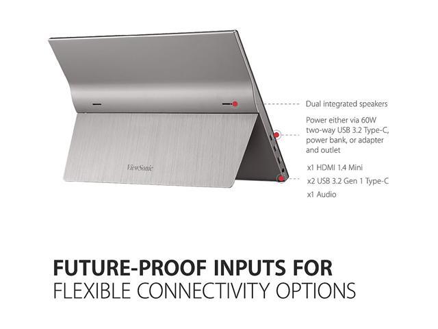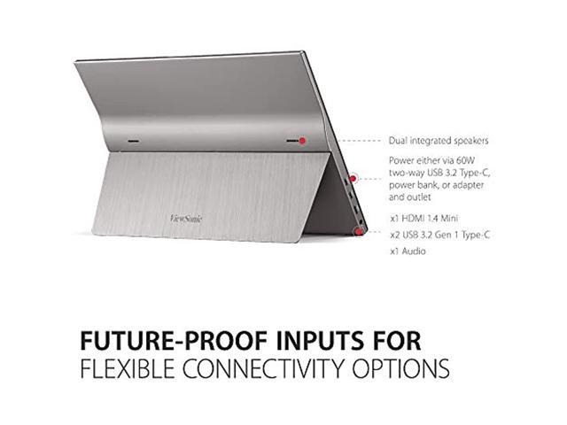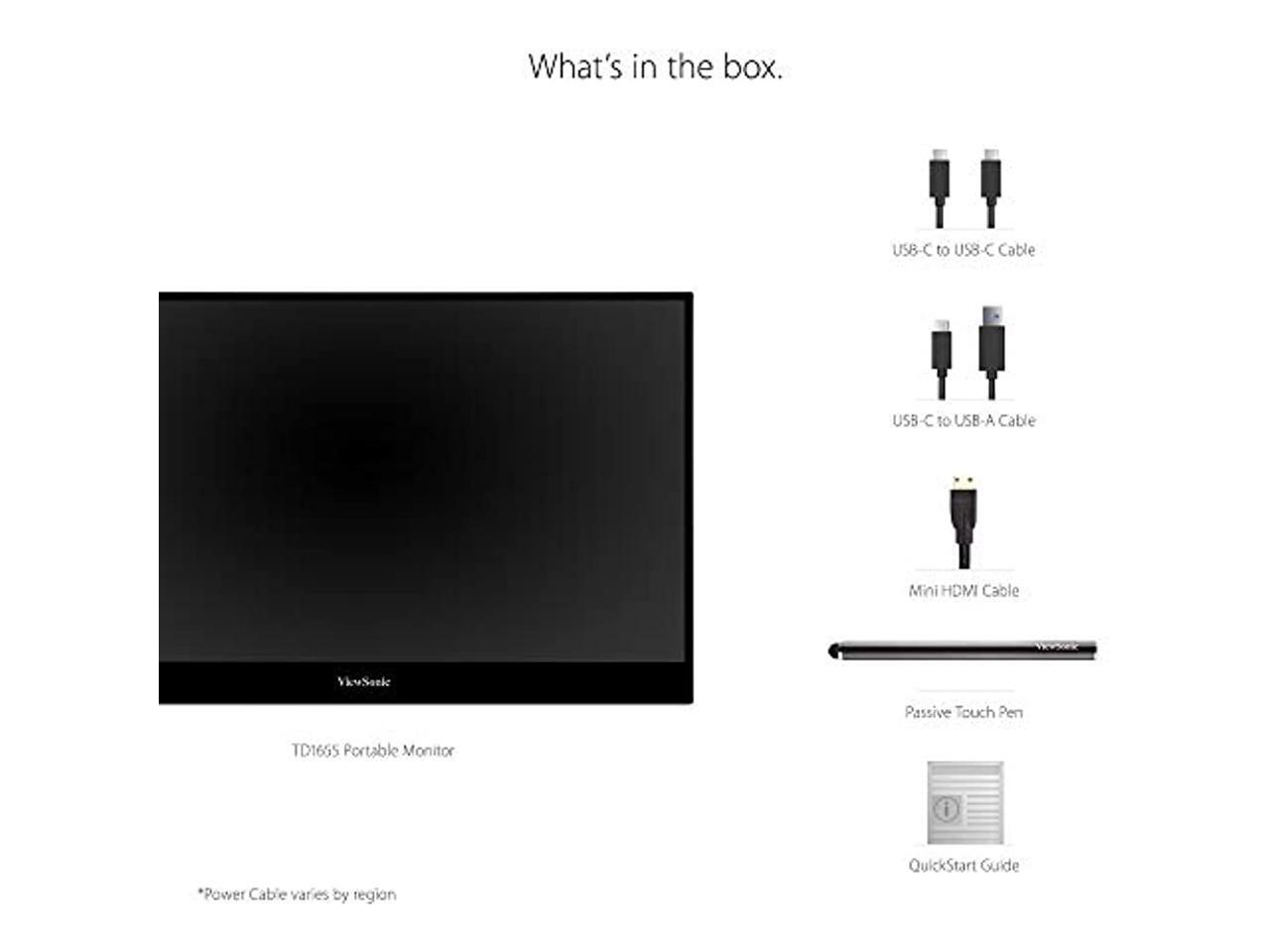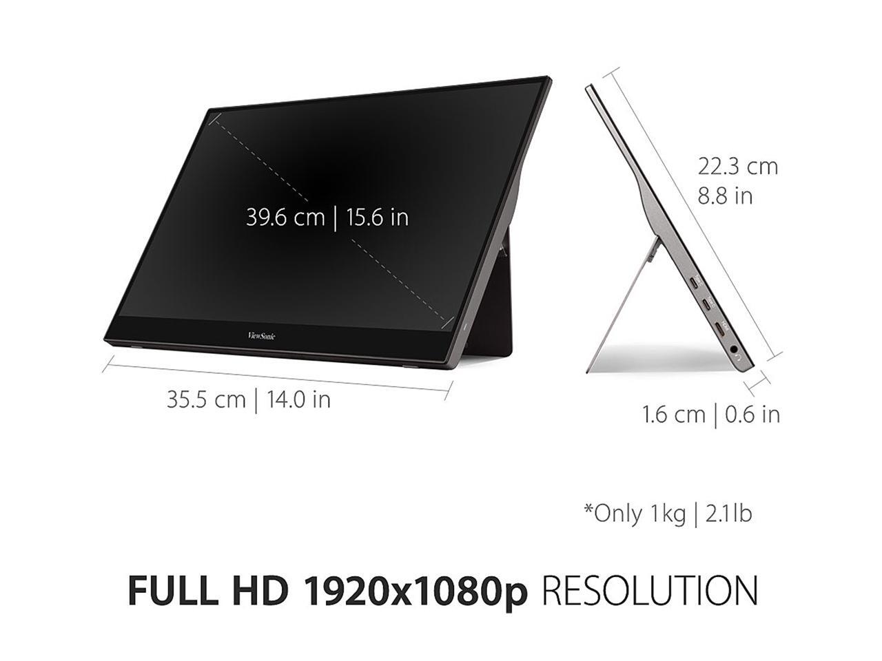 ViewSonic TD1655 15.6 Inch 1080p Portable Monitor with IPS Touchscreen, 2 Way Powered 60W USB C, Eye Care, Dual Speakers, Frameless Design, Built in Stand with Cover