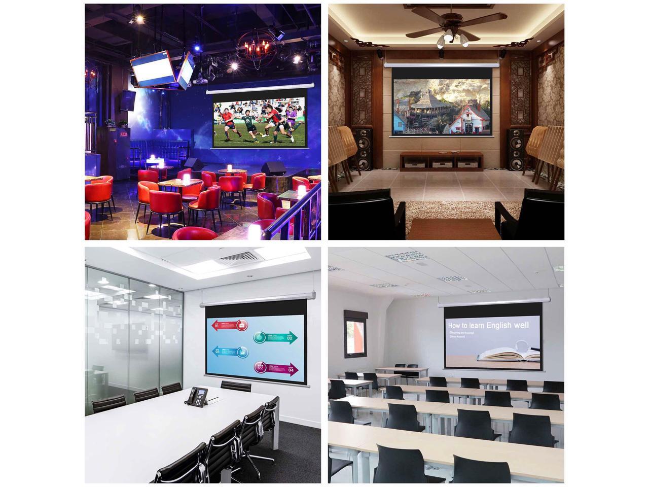 - Automatic Down & Play - Extend screen from small to large sizes by control panel or remote controller; Durable copper motor for silent operation