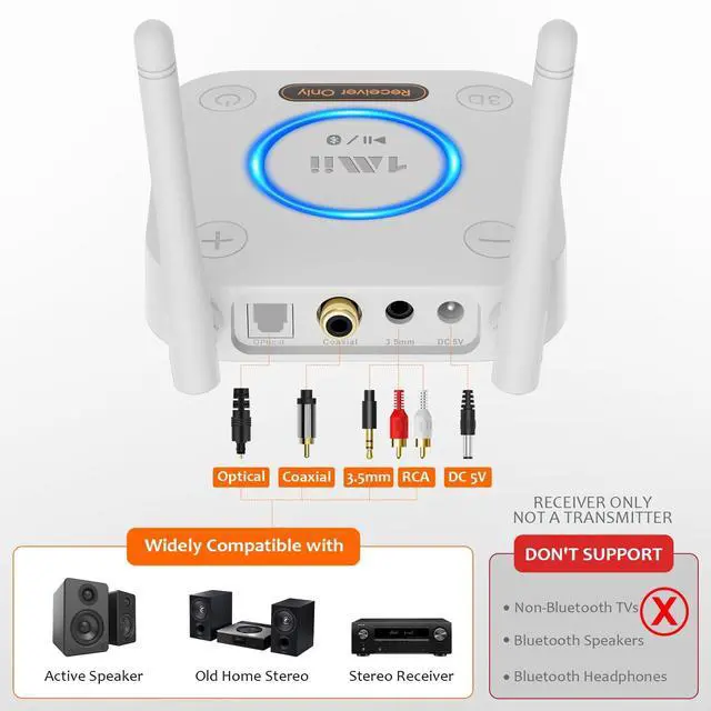 ![Alt view image 5 of 7 - [Upgraded] Bluetooth 5.3 Audio Receiver, Long Range HiFi Bluetooth Adapter w/ 3D Surround aptX HD Low Latency, Optical RCA AUX 3.5mm Coaxial for Home Stereo System - B06Pro Grey](https://c1.neweggimages.com/productimage/nb640/C2JJD2602250E4AEJ32.jpg)