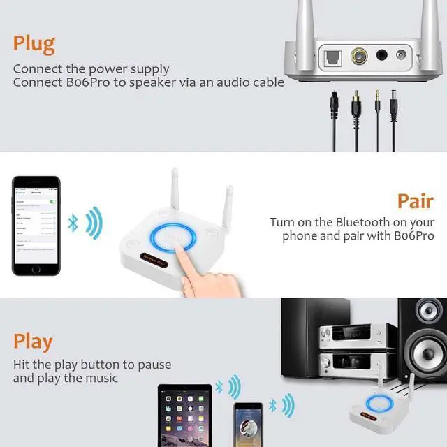 Note: B06Pro is only a Bluetooth receiver, to give Bluetooth capabilities to an existing home stereo/powered speaker.***NOT a Bluetooth transmitter. It CANNOT work with Bluetooth headphones and TVs.