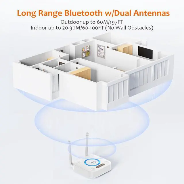 Indoor range up to 60-100ft (20-30m) (no obstacles)