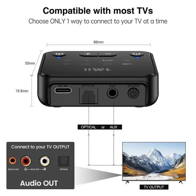 1Mii Bluetooth transmitter has volume control, suitable for middle-aged and elderly friends