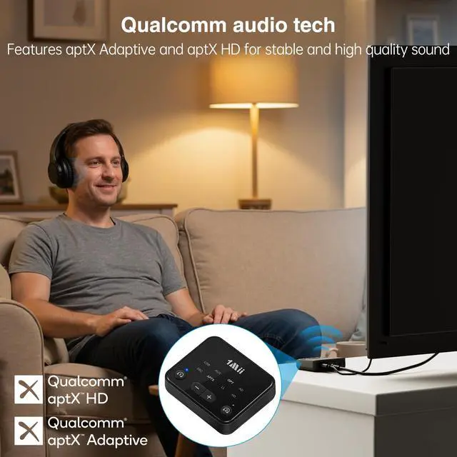 | A6 | 1) To achieve low latency, your Bluetooth headphones/speakers must support aptX Low Latency. If not, it may default to another codec (SBC, aptX), causing 70-200ms delay. 2) If your headphones support both aptX Low Latency and aptX HD, ensure the B06T6 is set to aptX Low Latency mode. quickly press the headphones 1 button on B06T6 twice to switch modes (you could see from the indicator on panel). 3) Note: When connecting two aptX Low Latency headphones, the audio will be downgraded to aptX. |