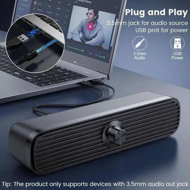 2. This speaker doesn't have built-in battery, the USB charging cable and 3.5mm audio cable must be inserted at the same time to work