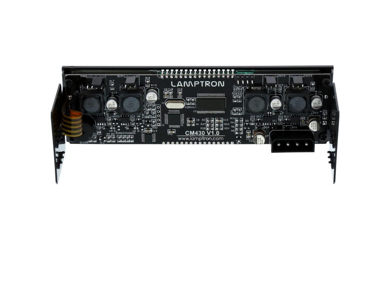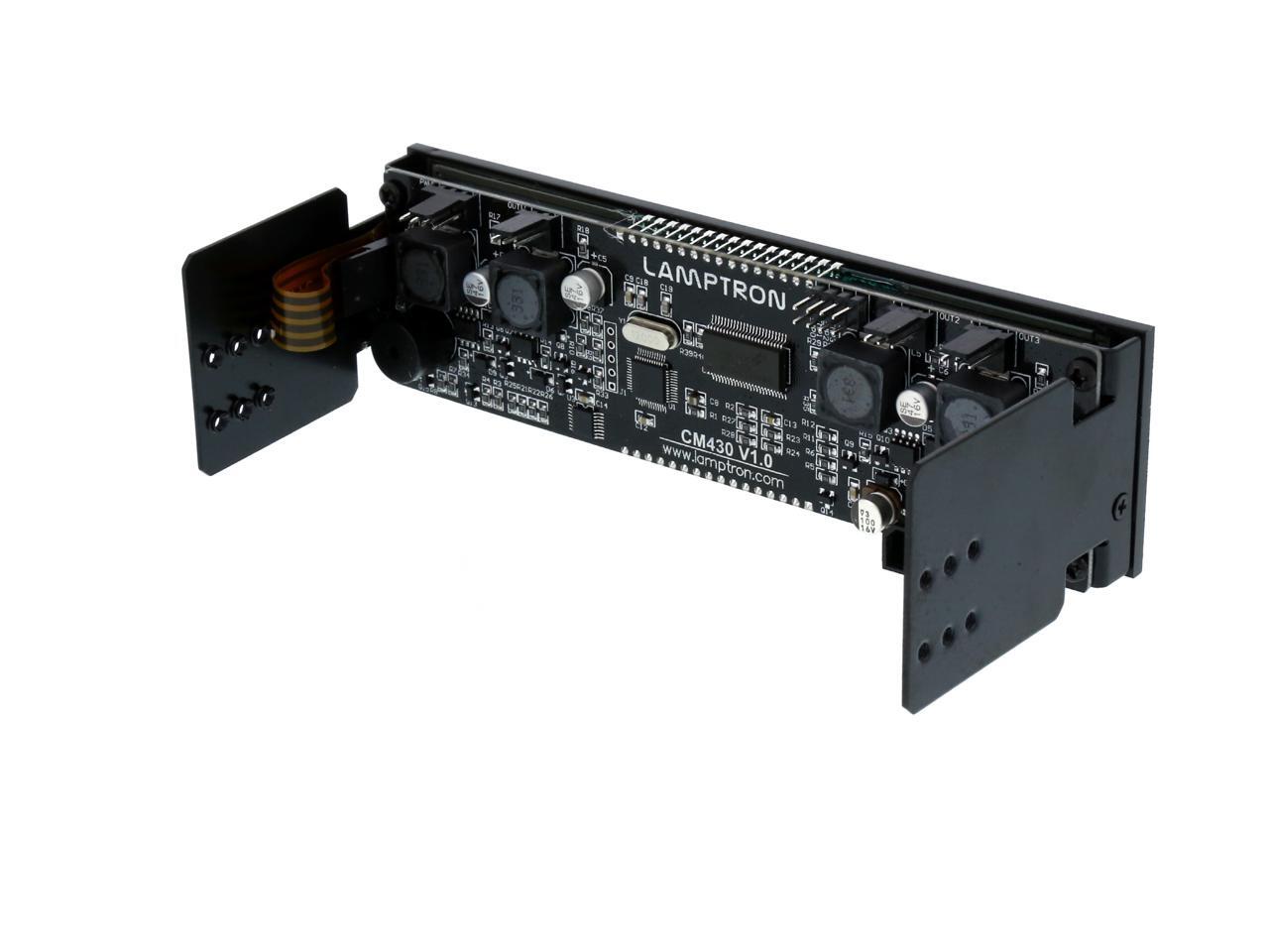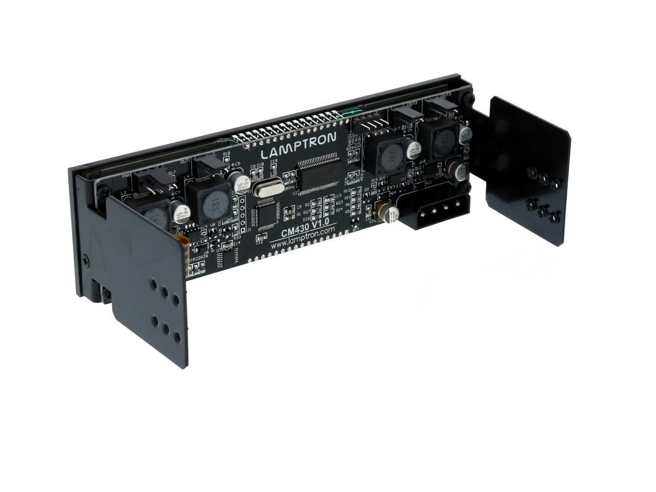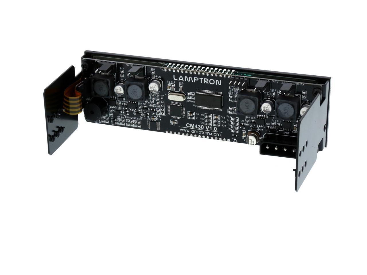 | Features | Touch-based (Green LED) Intelligent Fan Controller with PWM Fan Control. Cooling fan speed will self adjust based on the High/Low temperature perimeters you enter. 4 channels fan control for common +12VDC cooling fans each at a maximum of 30W output. First channel can control PWM signal, and the remaining three channels control fan speed through voltage, while voltage control ranges from 0 to 12VDC. Alarm setting lets you set alarm based on temperature reading for each channel individually. Large LED lit touch screen is 5" wide by 1.3" height. In Auto Mode the screen will automatically turn off after 3 minutes of idle time. In Manual Mode the screen will be on constantly. Green LED. |