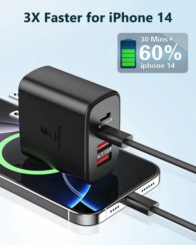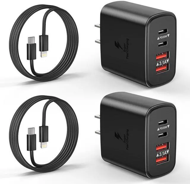 2-Pack 4-Ports Fast Charger Block & 6ft Long USB C to Lightning Cable