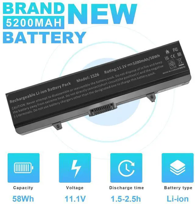 ![Alt view image 6 of 7 - Laptop Battery for Dell Inspiron 1526 1525 1545 1546 1750 1440 Pp29l Pp41l Fits Gw240 Rn873 M911g M911 X284g K450n Replacement [Li-ion 6-Cell 5200mAh/58WH]](https://c1.neweggimages.com/productimage/nb640/C5JMD2603090CK0X5BA.jpg)