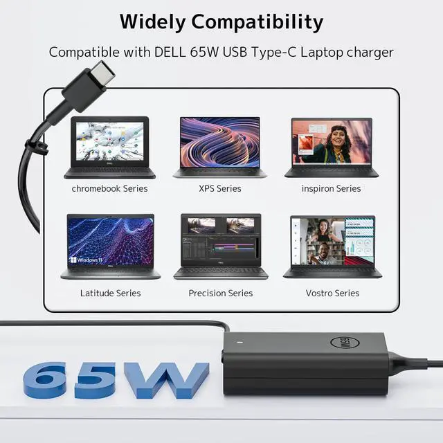 65W USB C laptop charger Compatible with Dell Laptop models
