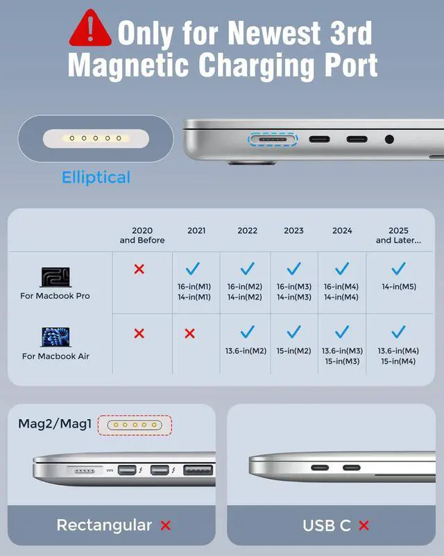 Widely Compatible with: MacBook Pro 16 inch (M4, 2024) (M3, 2023) (M2, 2022) (M1, 2021); MacBook Pro 14 inch (M4, 2024) (M3, 2023) (M2, 2022) (M1, 2021); MacBook Air 13.6 inch (M4, 2025) (M3, 2024) (M2, 2022); MacBook Air 15 inch (M4 2025) (M3 2024) (M2 2023);