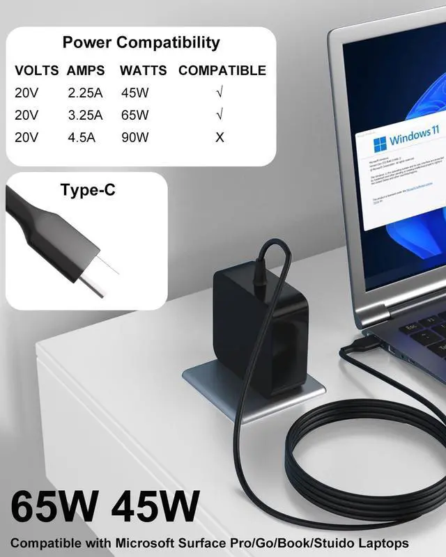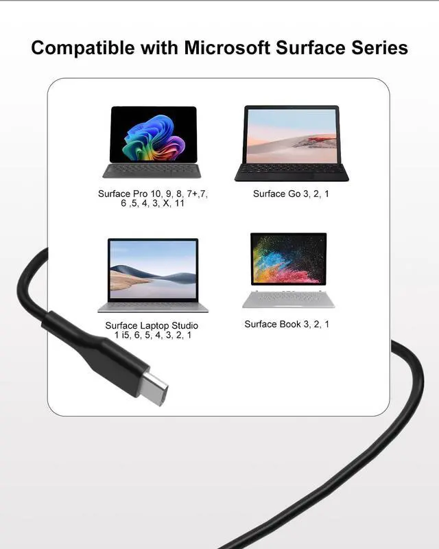 [Extensive Model Compatibility] This 65W USB-C charger is specially designed for the latest Surface Pro 12 (2025) Copilot+ PC Tablet and is fully compatible with a wide range of models including the Surface Pro 11, Surface Pro 10, Surface Pro 9, Surface Pro 8, Surface Pro X, Surface Pro 7+, Surface Pro 7, as well as Surface Laptop 7, 6, 5, and 4, ensuring a universal power solution for your devices.