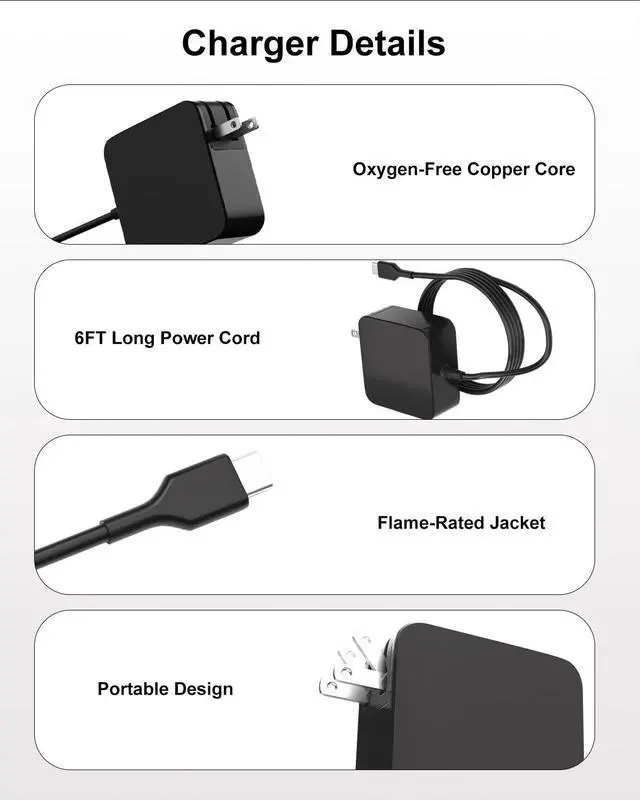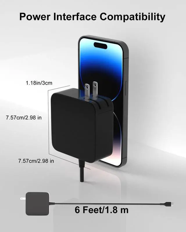[Global Ready & Highly Portable] Featuring a wide input voltage range of 100-240V (50/60Hz), this charger is ideal for international travel. The compact and lightweight design, coupled with the included 6ft AC power cable, makes it easy to carry in your bag for charging anywhere, whether at work, school, or on business trips.