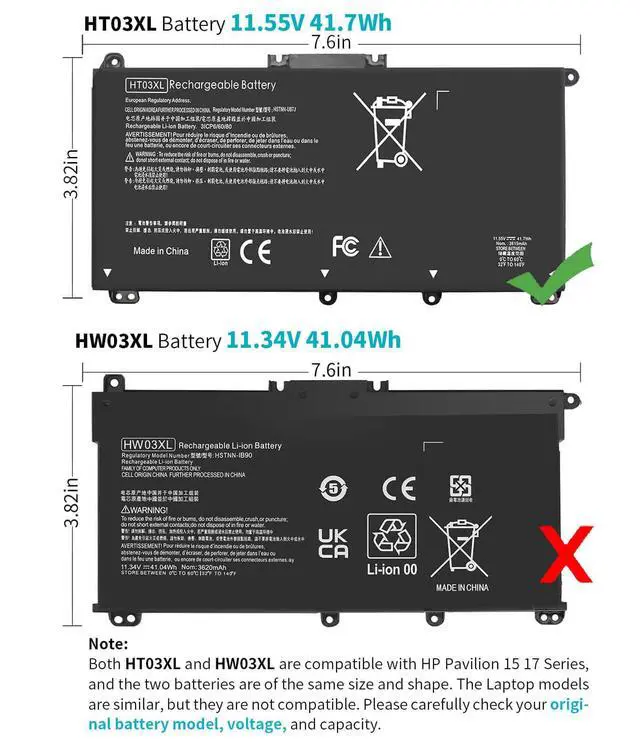 | Compatible with Part Number : | HT03041XL HT03XL L11119-855 L11421-1C1 L11421 -1C2 L11421-2C1 L11421-2C2 L11421-2C3 L11421-2D1 L11421-2D2 L11421-421 L11421-422 L11421-423 L11421-542 L11421-544 L11421-545 TPN-C136 TPN-I133 TPN-I134 TPN-Q207 TPN-Q208 TPN-Q209 TPN-Q210 HSTNN-DB8R HSTNN-DB8S HSTNN-IB80 HSTNN-IB8O HSTNN-LB8L HSTNN-LB8M HSTNN-UB7J |