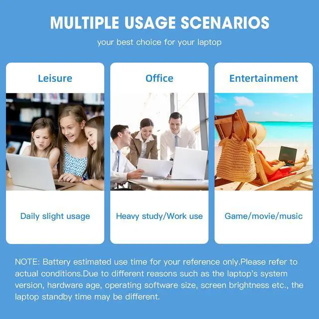Battery life is related to factors such as the CPU processor speed of the laptop, the brightness of the application screen, the external port of the wireless device, and the battery itself.