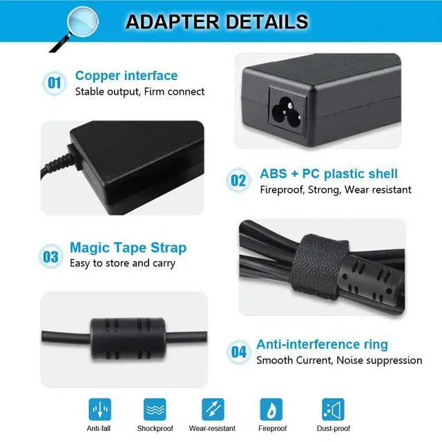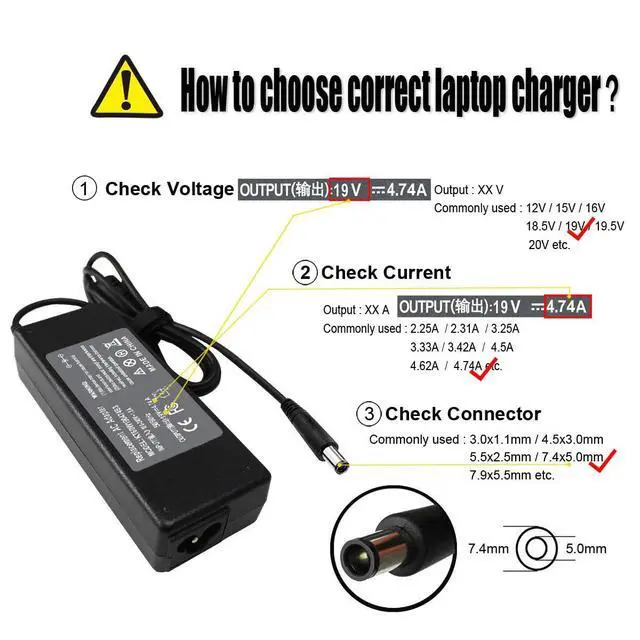 a.Output: 19V 4.74A 90w(also compatible with 19V 45W/65W) b.Connector: round shape, External Diameter 7.4mm * Internal Diameter 5.0mm.