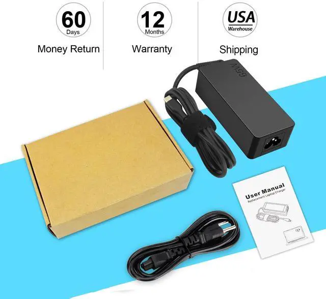 | Specifications: | Shipped from US warehouse or warehouse; INPUT: 100-240V, 50-60Hz 1.8A; OUTPUT:5V-3A, 9V-3A, 12V-3A, 15V-3A, 18V-3A, 20V 3.25A, 65W Max; Connecter Size:Type C/USB C; Package Includes:1x 65W USB-C Laptop Charger , 1x Power Cable ; 60 Days Money Return; 12 Months Replacement;2 Years Tech Assistance |