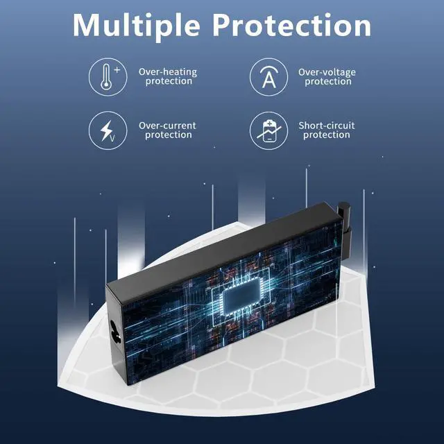 Built in smart safeguards and intelligent identification chip to protect your laptop from overload voltage/current, short current and high temperature, charging faster and safer.