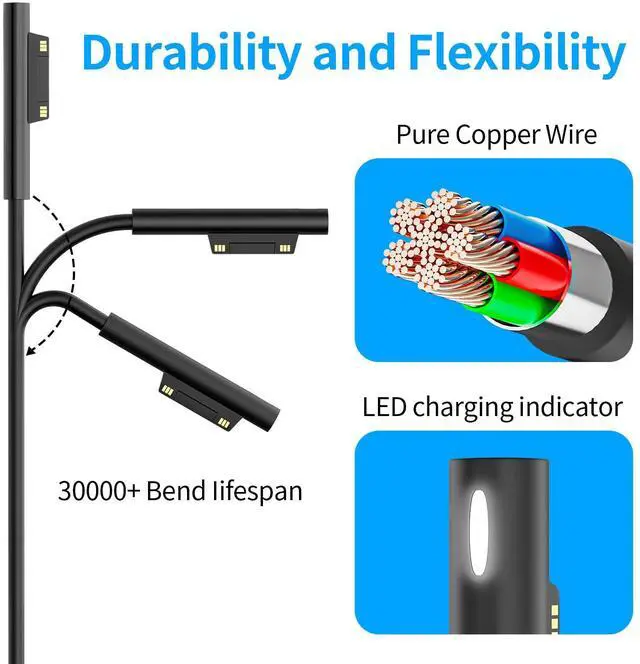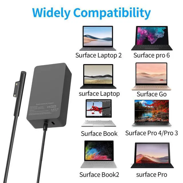 | Compatible Phone Models | [Universal Compatibility]Compatible with windows surface laptop charger Model:Compatible with Microsoft Surface Pro 10,9, 8, 7+, 7, 6, 5, 4, 3, X,Compatible with Windows Surface Laptop 5, 4, 3, 2, 1, Studio,Compatible with Surface Book 3, 2, 1, Compatible with Surface Go Laptop,Tablet 3, 2,1.perfect match surface model 1706, 1866, 1796, 1724, 1625, 1867, 1735, 1800 and so on, higher charging performance than 44W, 39W, 36W, 24W laptop / tablet charger |