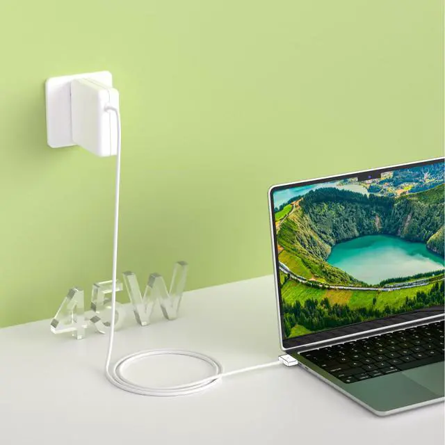 The 45W Power Adapter features a powerful magnetic connector as well as a durable cord that will stay intact and safe from fraying even after going through numerous bends and charges.