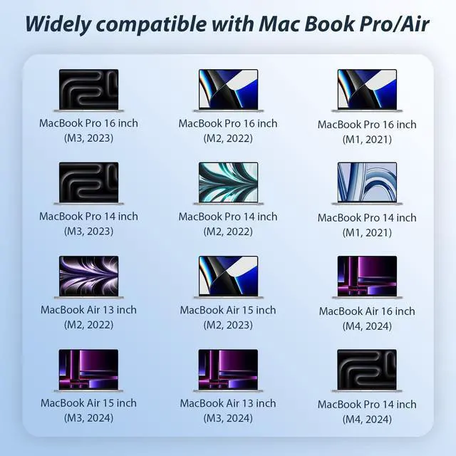Extensive Compatibility for MacBook ModelsPerfectly compatible with a wide range of MacBook devices, including MacBook Pro 16-inch ( M1 Pro, M1 Max, M2 Pro, M2 Max, M3, M3 Pro, M3 MaxM4) and MacBook Pro 14-inch (M1 Pro, M1 Max, M2 Pro, M2 Max, M3 Pro, M3 MaxM4) from 2021 - 2025, as well