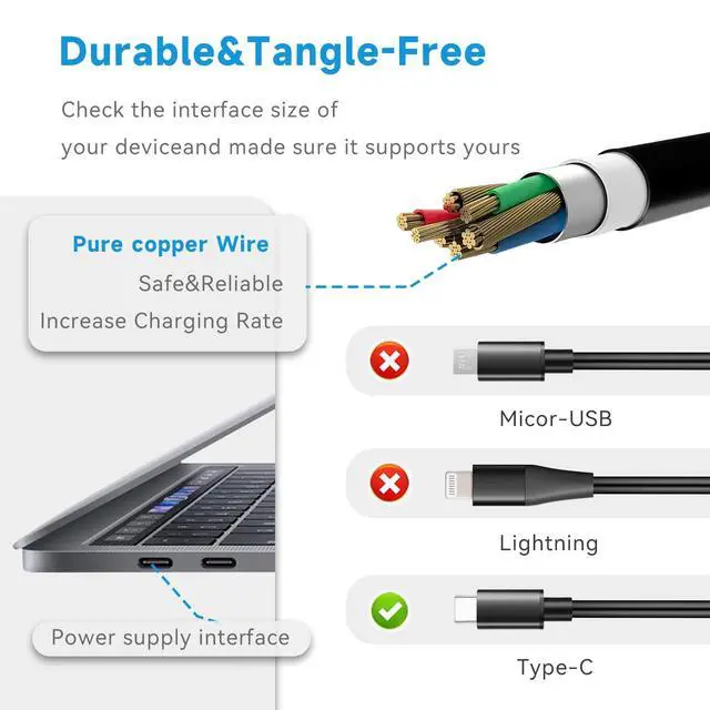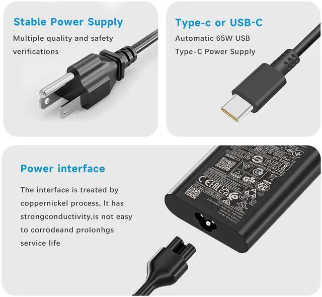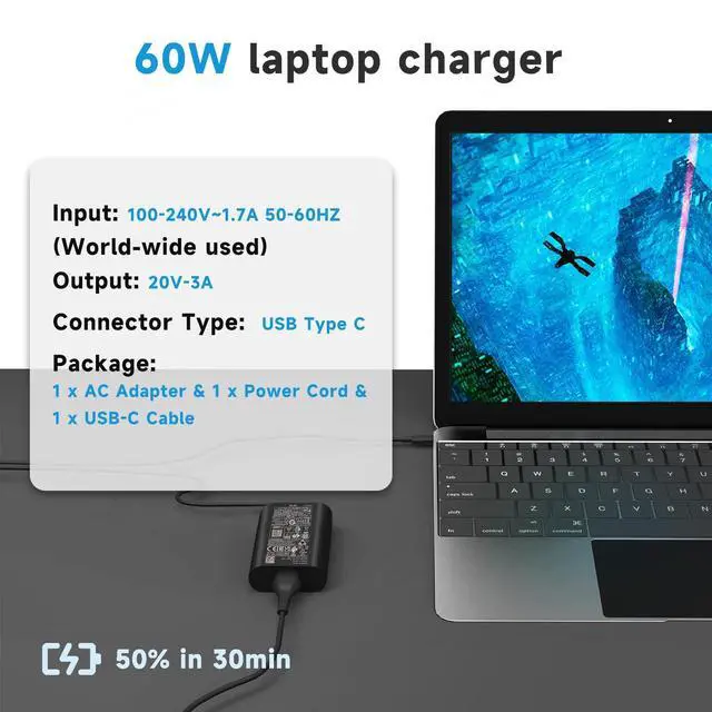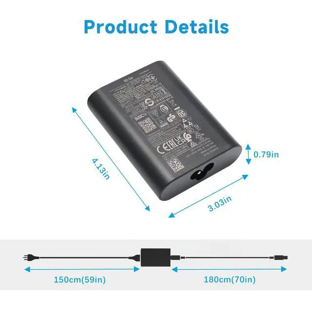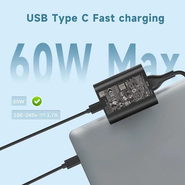 LIFKAHY Slim 60W Laptop USB-C Charger Compatible with Dell Latitude 5540 5530 5430 7420 7440 7450 7520 9520 9430 9420 Inspiron XPS 13 14 Plus 9320 9440 7330 2-in-1 Chromebook Type C AC Power Cord