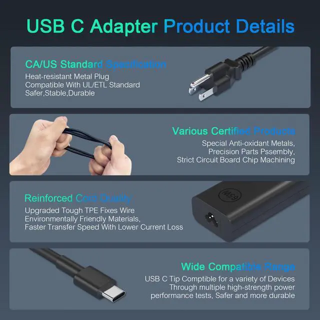 SPECIFICATION Input: 100 ~ 240V 50~60Hz; Output: 20V 2.25A 45W; 20V 3.25A MAX 65W Dell USB C Laptop Charger