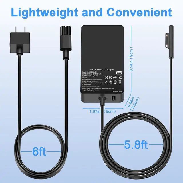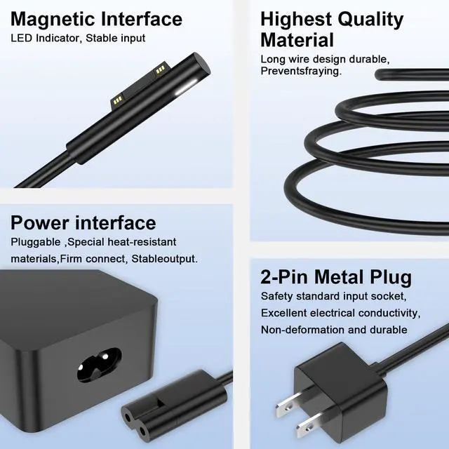 65W Laptop Charger Compatible with Microsoft Surface Pro 11 10 9 8 3 7 7+ 6 5 4 X, Compatible with Surface Windows Laptop 7 6 5 4 3 2 1, Book 3 2 1 65W 44W 36W Power Supply Cord
