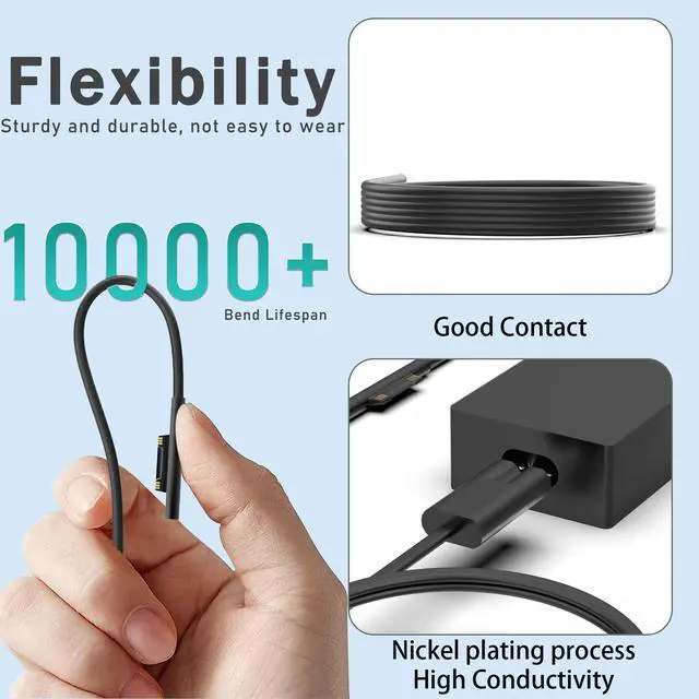 | Compatible with: | Compatible with hp chromebook/Spectre X360, Lenovo ThinkPad/Yoga, Dell Chromebook/Latitude, Acer, Asus, Samsung, Google Series Universal Chromebook Type C Power Cord | Compatible with HP Chromebook X360/Spectre X360 Series 11 12 14-CA 14C-CA 14A-NA 14B-CA 14-DA: 11-ae027nr 11-ae051wm 11-ae001tu r 11-ae120nand more | Compatible with Microsoft Surface Pro 10, 9, 8, 7+, 6, 5, 4, 3, X, Windows Surface Laptop 6, 5, 4, 3, 2, 1, Surface Go Tablet, Surface Book 3, 2, 1, | Compatible with Lenovo ThinkPad/Chromebook/Yoga, Compatible with Lenovo ThinkPad T14 T16 E15 E14 T480 T490 Yoga 7i C930 C940 Chromebook S330 Laptop Power Cord | Compatible with HP Laptop Spectre X360,Spectre,Envy X360, Envy,Elitebook x360,Elitebook,Chromebook,Elite x2,ProBook Type C Fast Charging Power Cord Ac Adapter | Compatible with Lenovo ThinkPad T480s T580s T490 E480 E580 X1Carbon X13 Chromebook 2nd Gen Yoga Slim Type C Fast Charging Computer Power Cord |