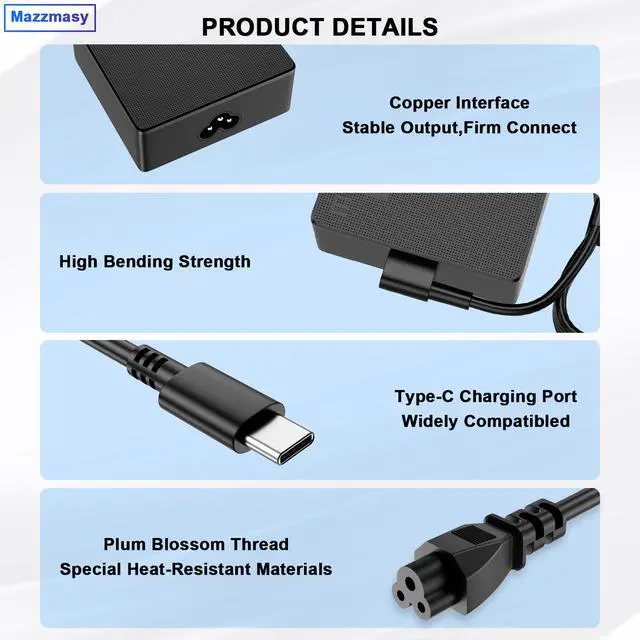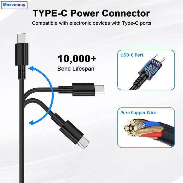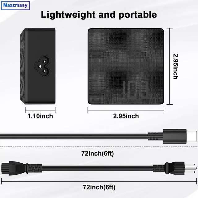 • [Specification]Input: AC 100-240V~50/60Hz; Output:20V-5A/15V-3A/9V-3A/5V-3A,100W USB-C Type C (also compatible with 15W/27W/45W/90W) USB C Power Delivery 3.0(PD)
