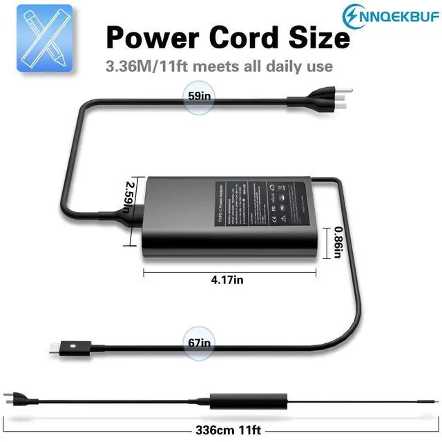 - Power: 65w (Compitable with 65W 45W USB-C Laptop Charger)