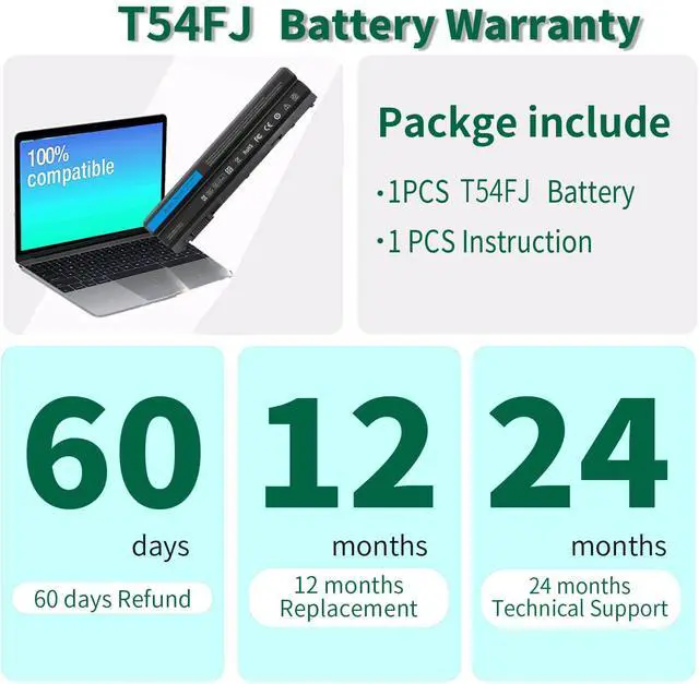 | Specifications: | Shipped from US warehouse or warehouse; Battey model: T54FJ, 8858X , M5Y0X, 60 Days Money Return; 12 Months Replacement;2 Years Tech Assistance |